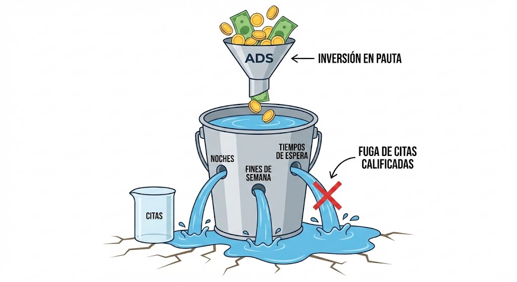 A esto lo llamamos FUGA DE CITAS CALIFICADAS. Y es la razón por la que tus campañas parecen “no funcionar”.